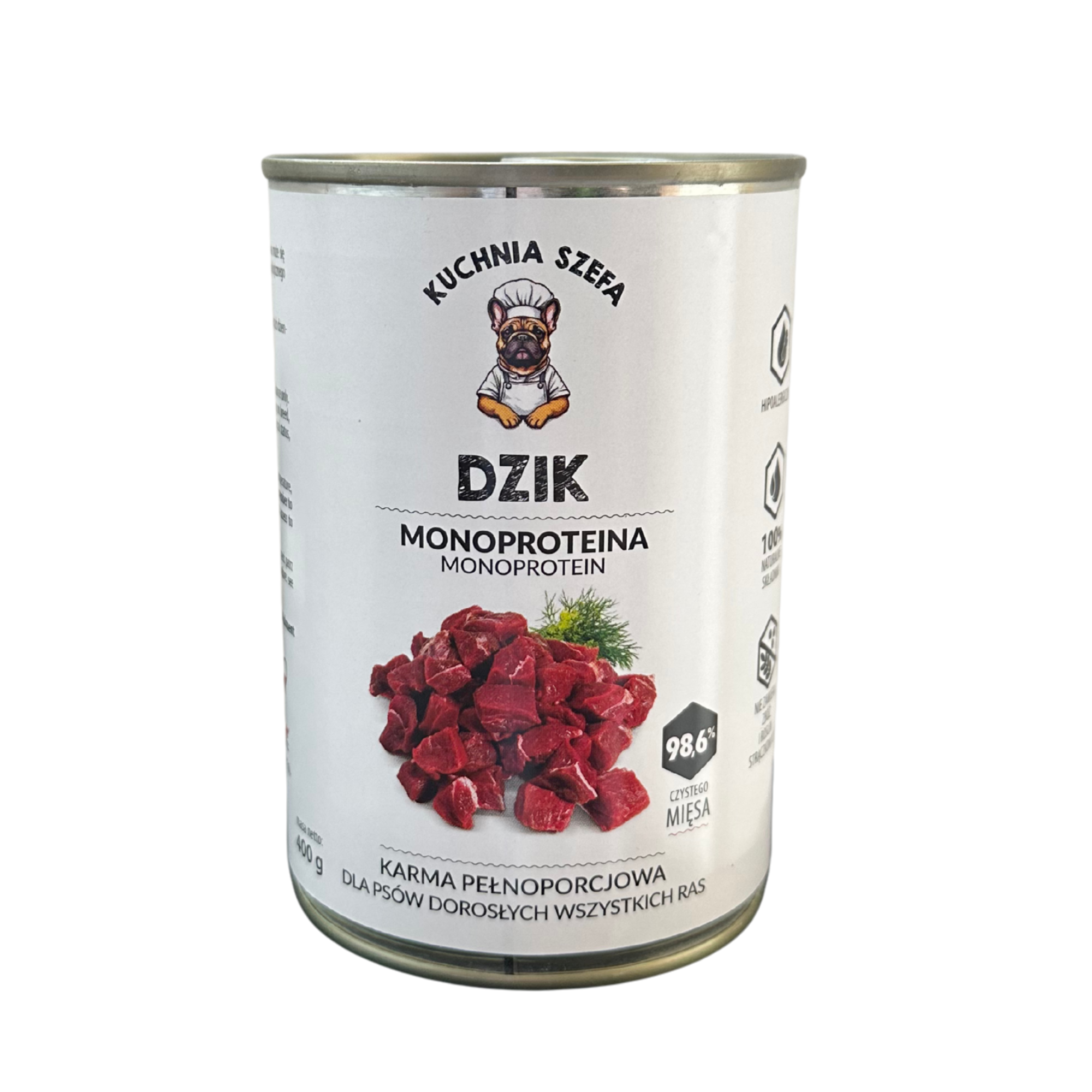 MOKRA KARMA DLA PSA – MONOPROTEINOWA DZICZYZNA (DZIK) 400G