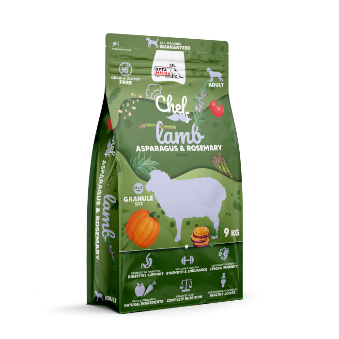 Karma dla dorosłych psów Syta Micha Jagnięcina to bezzbożowa, ultra premium sucha karma, idealna dla psów każdej rasy. Wysoka zawartość jagnięciny, warzyw, owoców i prozdrowotnych dodatków wspiera zdrowie i dobre samopoczucie, zapewniając przy tym smaczny i pełnowartościowy posiłek.
