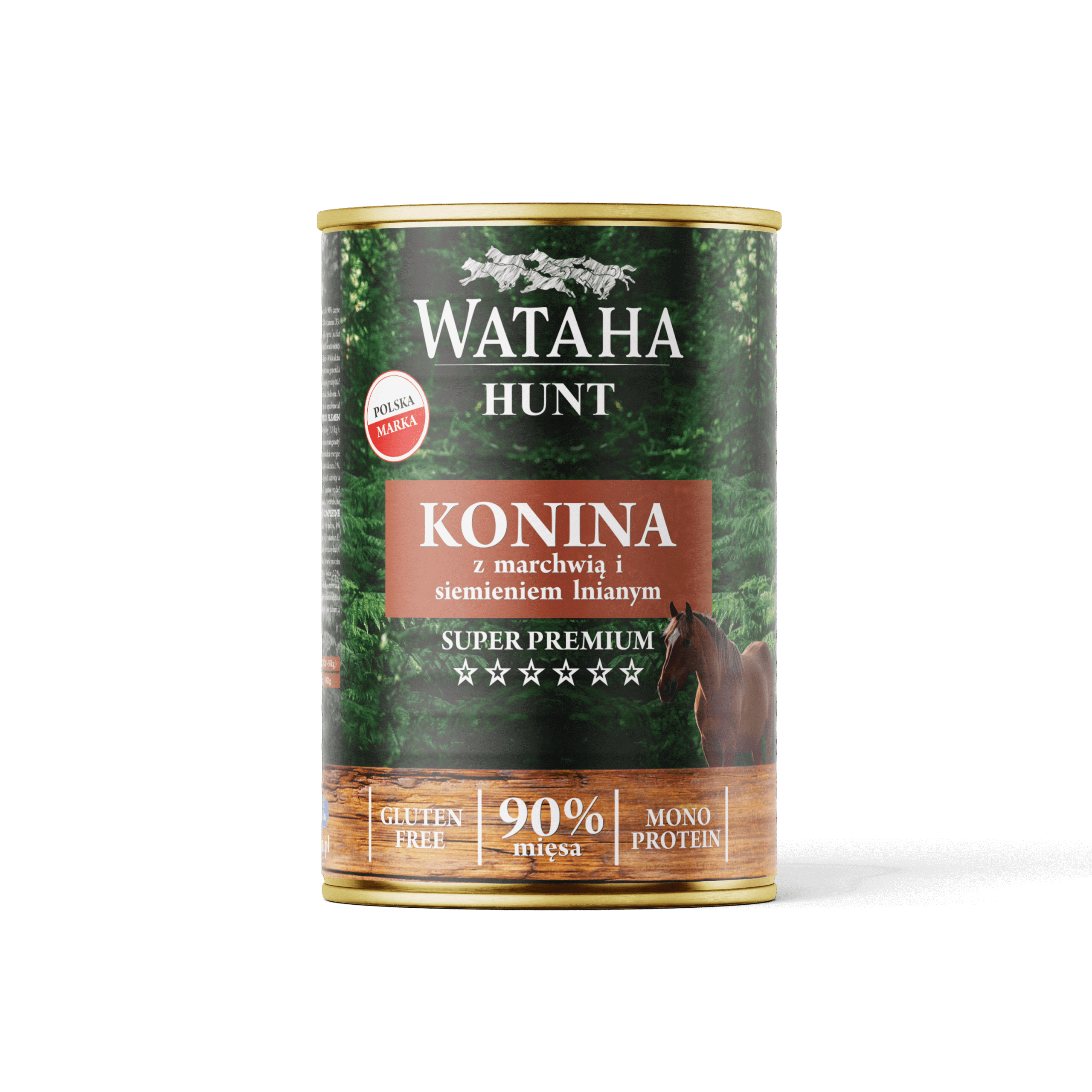 Wataha Hunt Konina z Marchewką i Siemieniem Lnianym – mokra karma monobiałkowa dla psów